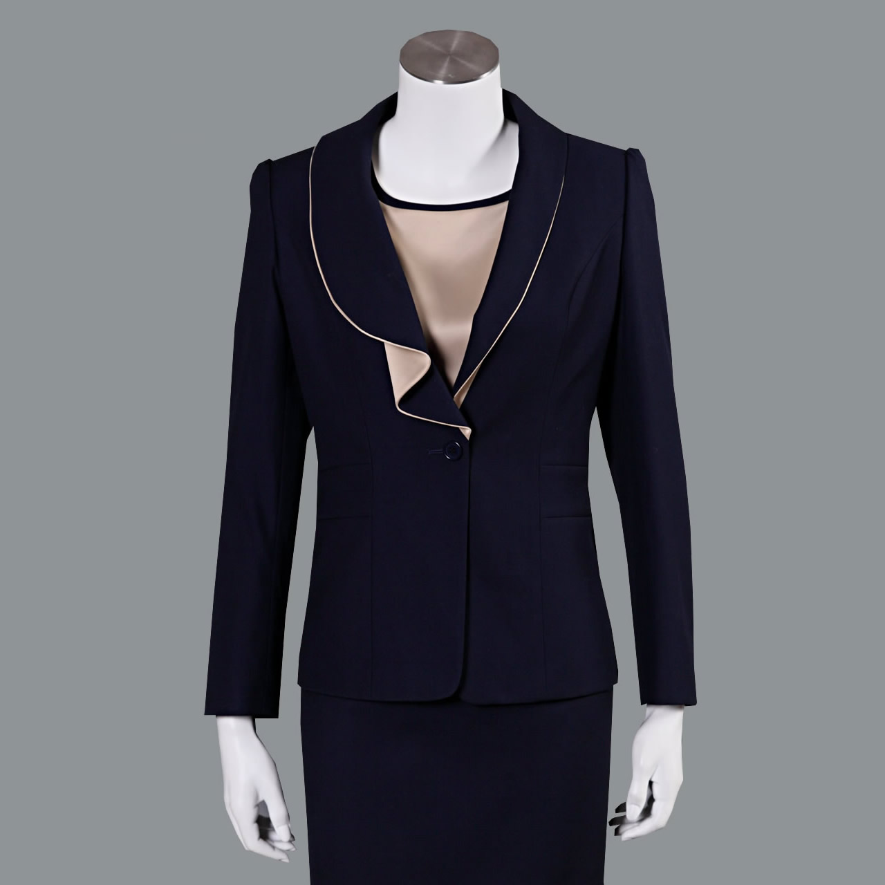 此款女士西服定制款式采用精品毛料,時(shí)尚兩粒扣設(shè)計(jì),修身西服中典型的代表,精品韓版西服款式,適合作為企業(yè)行政西服,顏色款式都很時(shí)尚,同有內(nèi)搭的襯衫定制,是女性更加柔美干練。