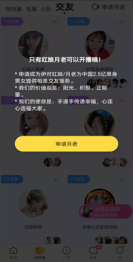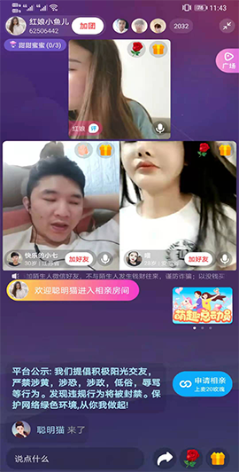 戶看主播唱歌,表演,玩游戲,一對一或一對多視頻相親,直播間隨時申請上麥自由連麥,還有專屬相親。
